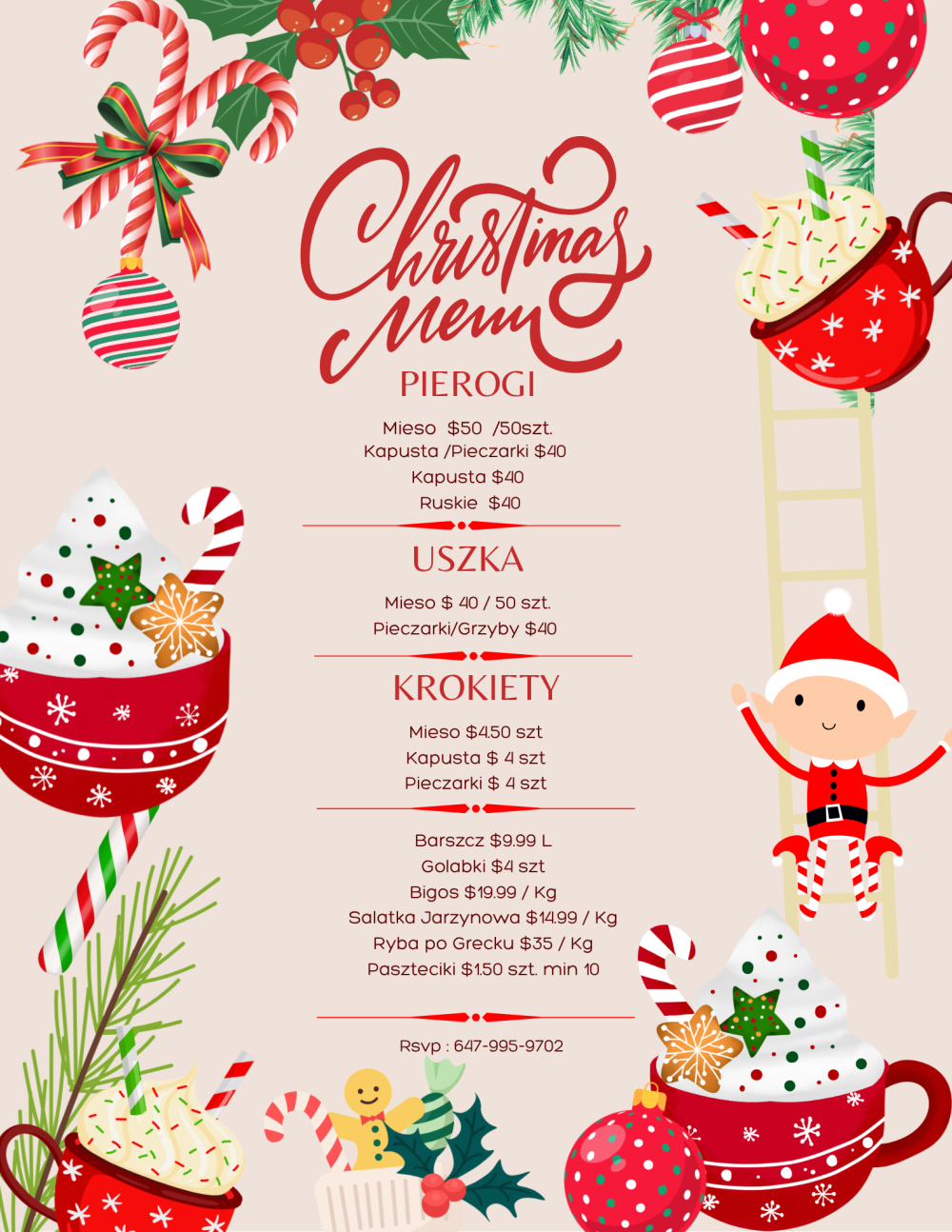 ? Holiday Homemade Food ? I invite you to order homemade, traditional Polish dishes for the holidays! Everything prepared with heart ️ and fresh ingredients — just like Mom's! ? Pickup: Mississauga/Brampton ? RSVP / Orders: 647-995-9702 Order early, quantities are limited! ?